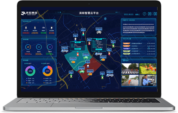 通过设施、人、车、物、事件、作业实况等多维度融合,将总体环卫运营情况通过数字地图+数据看板的方式直观展示,实现智慧环卫运营全屏可视化和数字化管理