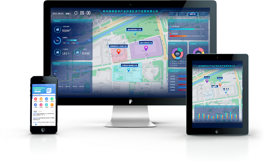 支持各类地图应用,包括图片式地图,GIS地图,动态3D地图以图表结合的形式生动直观地展示园区项目:逼真的动态模型仿真、拟实场景交互和实时数据监控,轻松掌握城市一手信息,赋能智慧城市高效运营